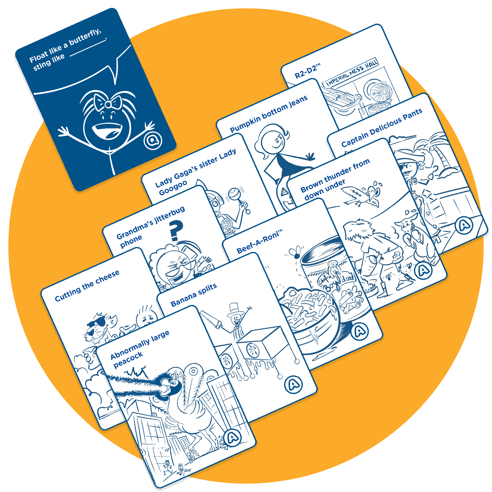 Players will choose the funniest answer card in their hand to submit face down to the reader. The reader will select the winner by picking the most amusing answer card, and that player wins the hand.